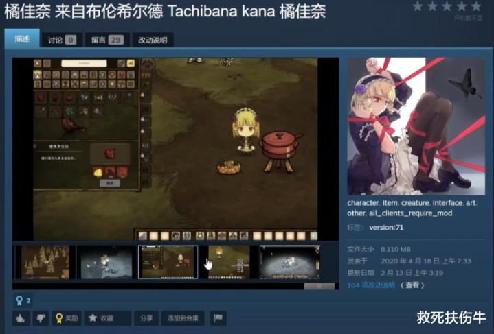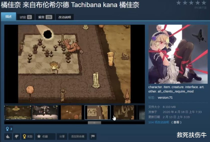 网名“死梦めぐり”,“终焉さくら”,是一位七年前的饥荒MOD作者。在饥荒做了一个极黑的布伦希尔德的橘佳奈mod。
