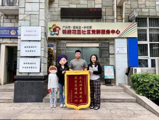 2月25日下午,住户梁女士专程将一面印有“灭火神勇保民安,居委真情暖人心”的锦旗送到黄家杰手中,激动地表达了感谢之情。